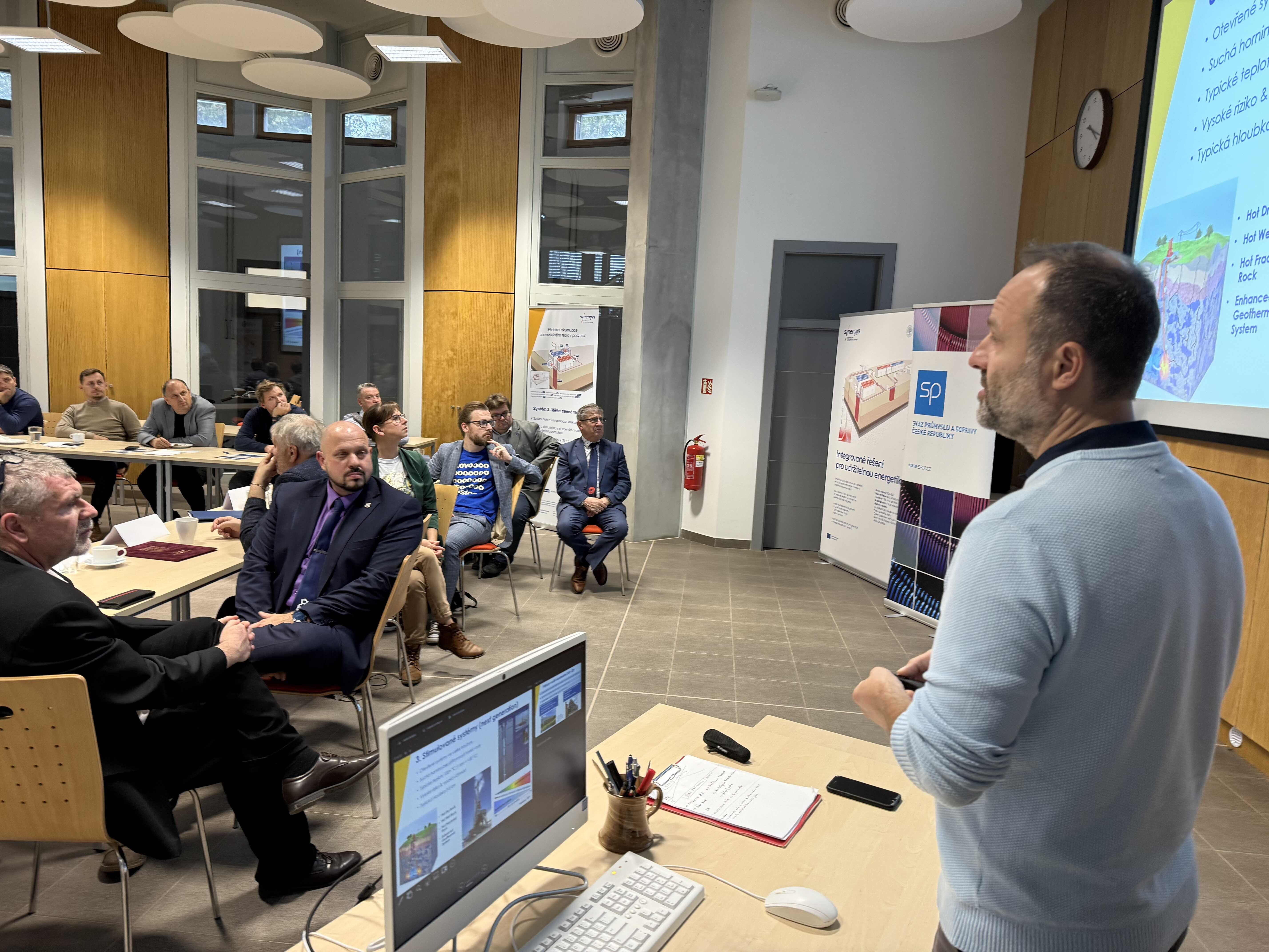 [16.11.2025] Geotermální projekt SYNERGYS byl ve středu 13. listopadu za účasti starostů měst Litoměřice, Roudnice nad Labem, Lovosice a Štětí prezentován zhruba třem desítkám zástupcům firem z Litoměřicka, Lovosicka, Roudnicka a Štětska a představitelům veřejné správy i agentury pro podporu podnikání a investic CzechInvestu. Místem setkání, které organizoval Svaz průmyslu a dopravy ČR, se stalo vědecko-technické centrum RINGEN.